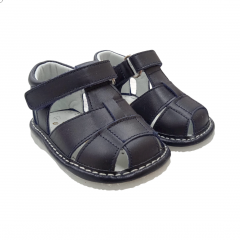 Unas sandalias sofisticadas , flexibles y con la piel blanda para los mas pequeños . Zapato tipo sandalia fabricado en napa de piel bovina  y sistema de cierre de velcro para un mejor ajuste . La parte interior está fabricada con forro de piel natural y su  suela es de goma antideslizante. Calzado diseñado y fabricado en España.