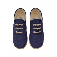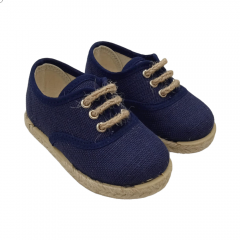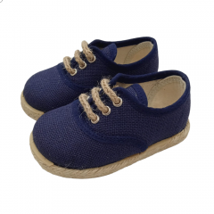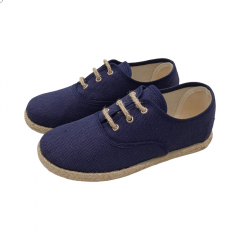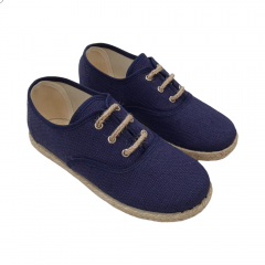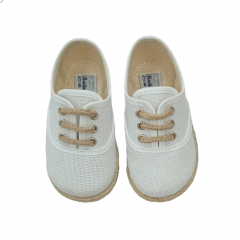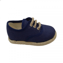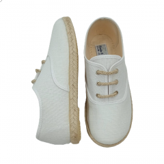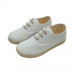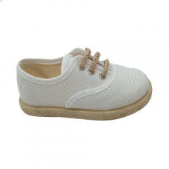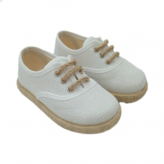 Zapato bluche de lino en color beig hielo con suela de esparto y cordones, Piso de goma para mejor adherencia.