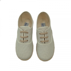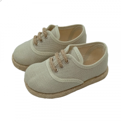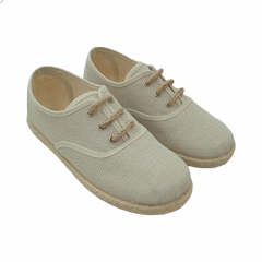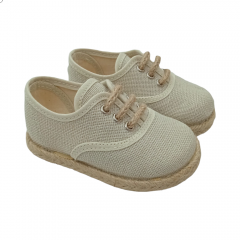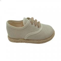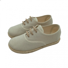 Zapato bluche de lino en color marino con suela de esparto y cordones, Piso de goma para mejor adherencia.
