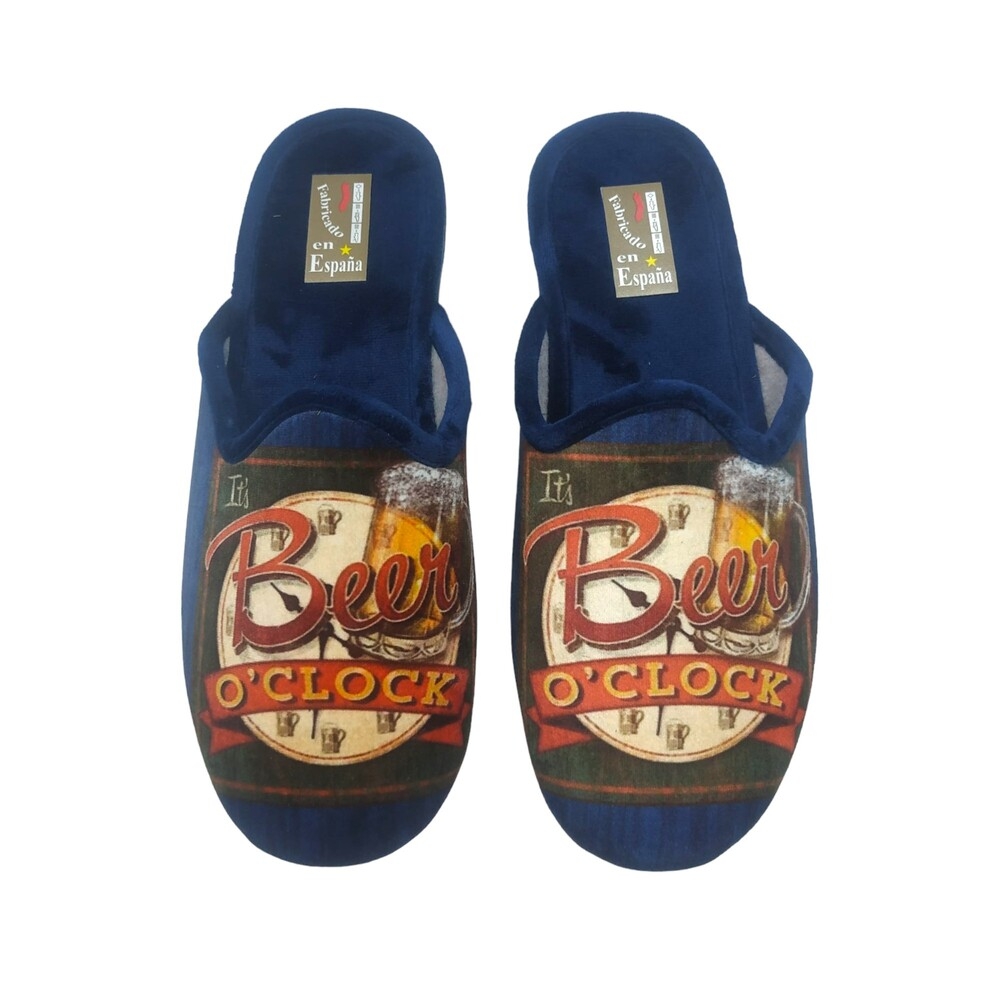 Zapatilla de casa de caballero con dibujo de cerveza.