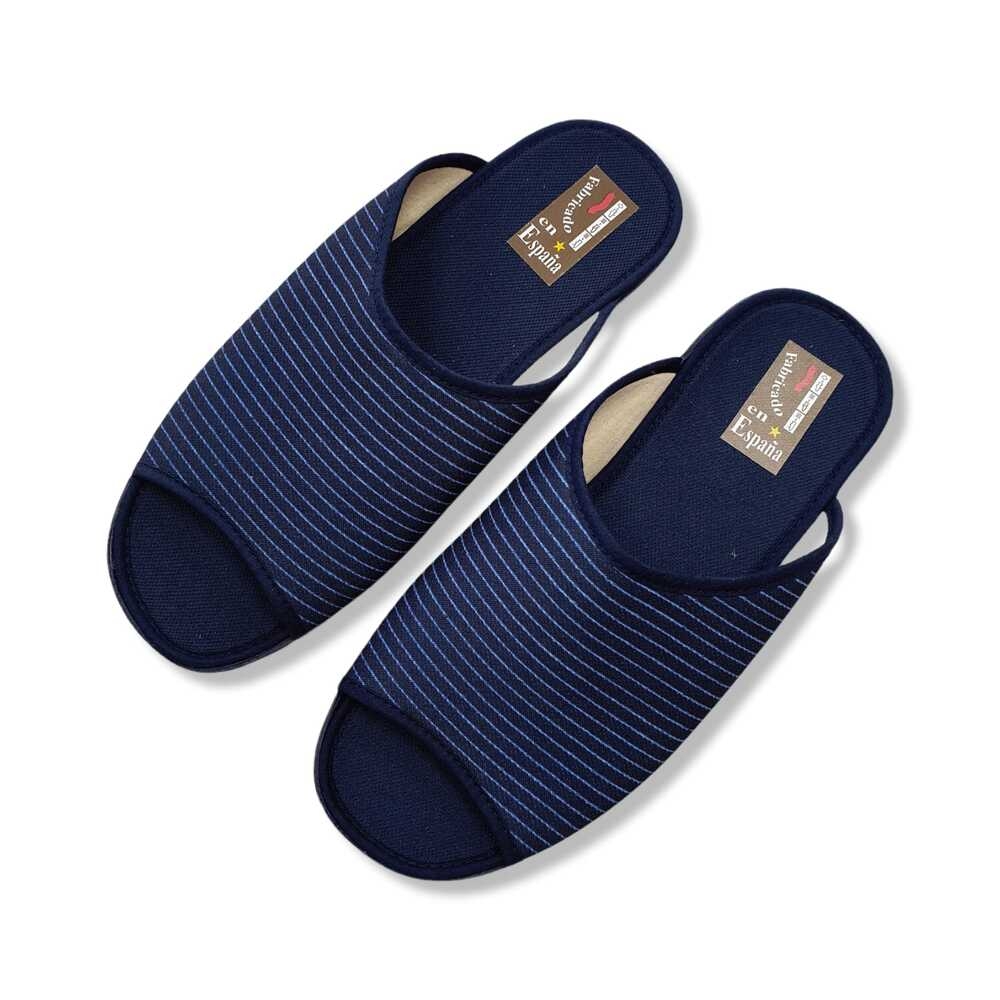 Zapatilla de caballero para estar por casa, de tejido fresquito y suela de goma antideslizante.