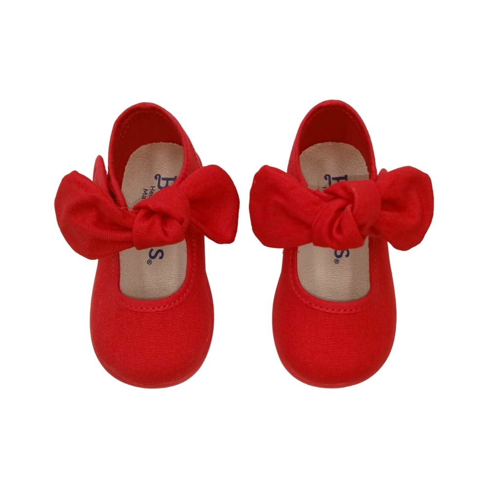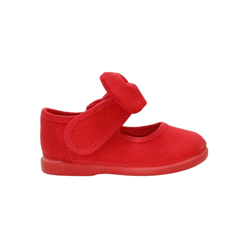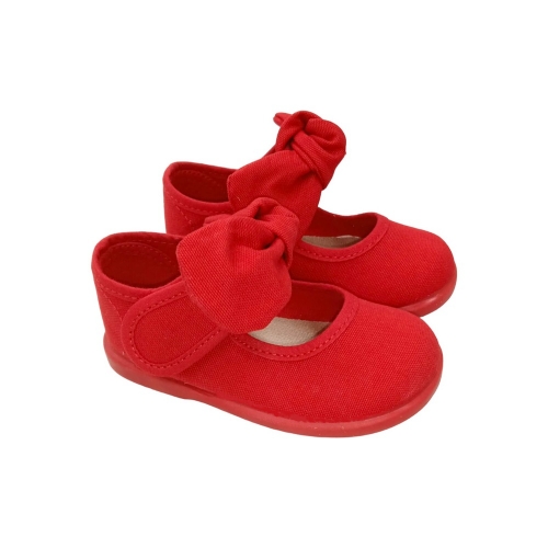 Merceditas de lona para niñas con un bonito lazo frontal de quita y pon. El cierre es con un velcro para un mejor ajuste. Fabricadas en textil. Muy cómodas y transpirables, perfectas para los meses más calurosos. Puedes combinarlas con todo. La suela es antideslizante. ¡Serán las favoritas de la princesa de la casa!
