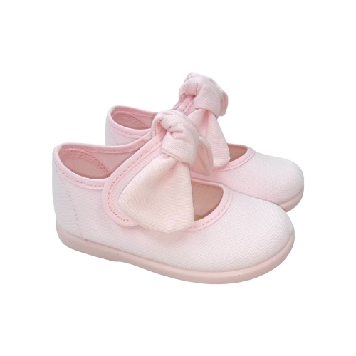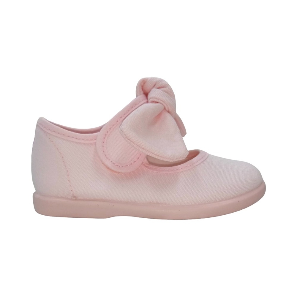 Merceditas de lona para niñas con un bonito lazo frontal de quita y pon. El cierre es con un velcro para un mejor ajuste. Fabricadas en textil. Muy cómodas y transpirables, perfectas para los meses más calurosos. Puedes combinarlas con todo. La suela es antideslizante. ¡Serán las favoritas de la princesa de la casa!