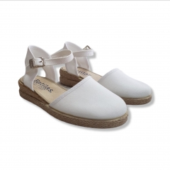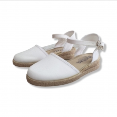 Valenciana en color rojo con correa hebilla, con el corte de algodón, forro de algodón, planta de poliéster y suela de caucho natural vulcanizado.