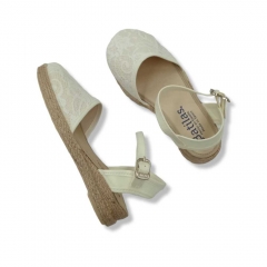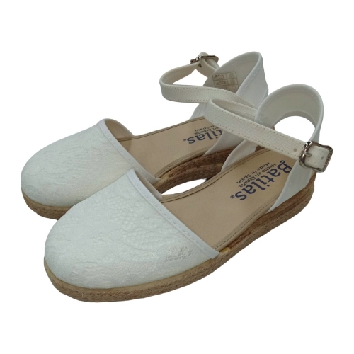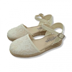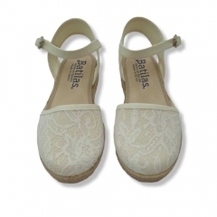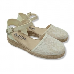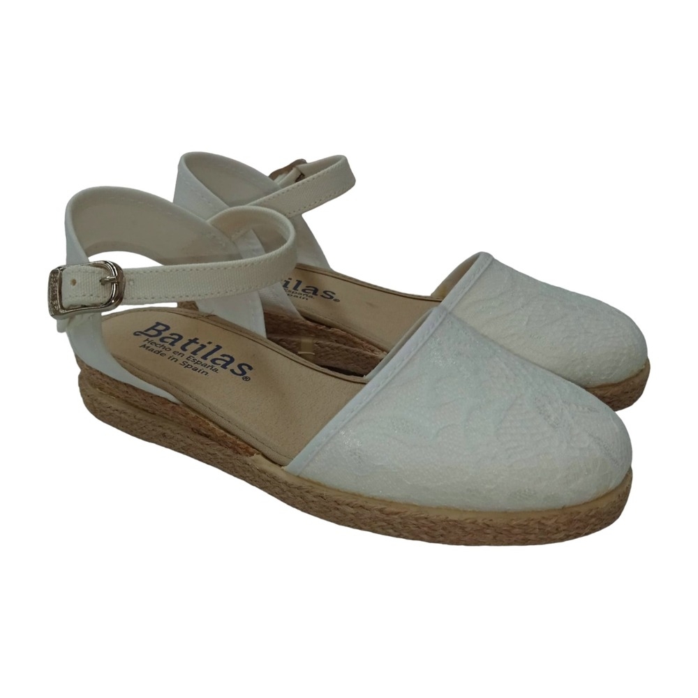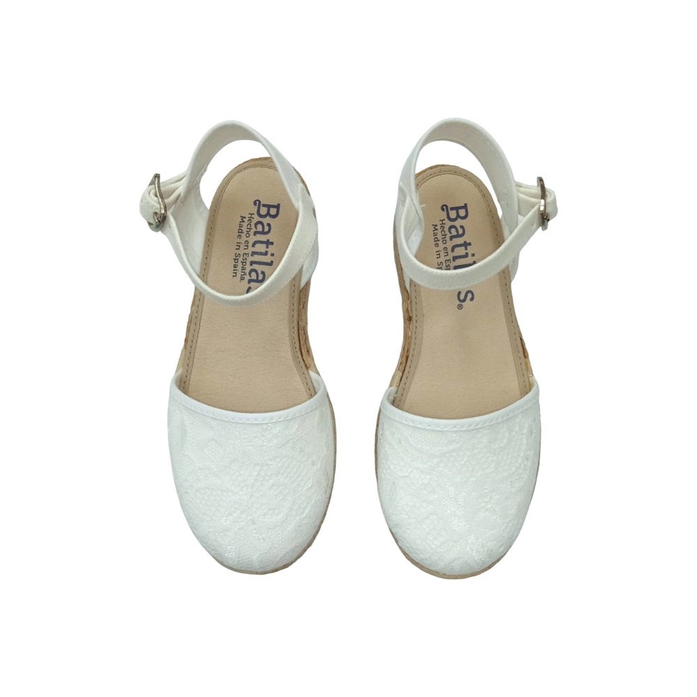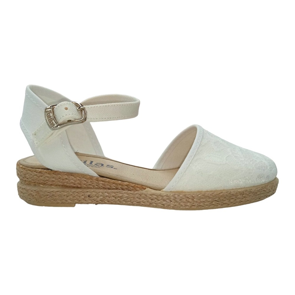 Valenciana en color blanca con cierre de hebilla, suela de goma antideslizante.