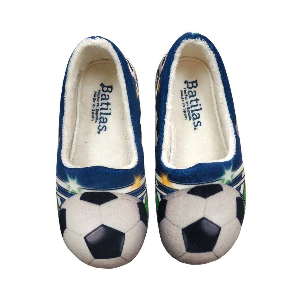 Zapatilla de casa de niño. Fabricada en España por Batilas. Tejidos naturales, para una buena transpiración. Piso de caucho muy flexible y cómodo.