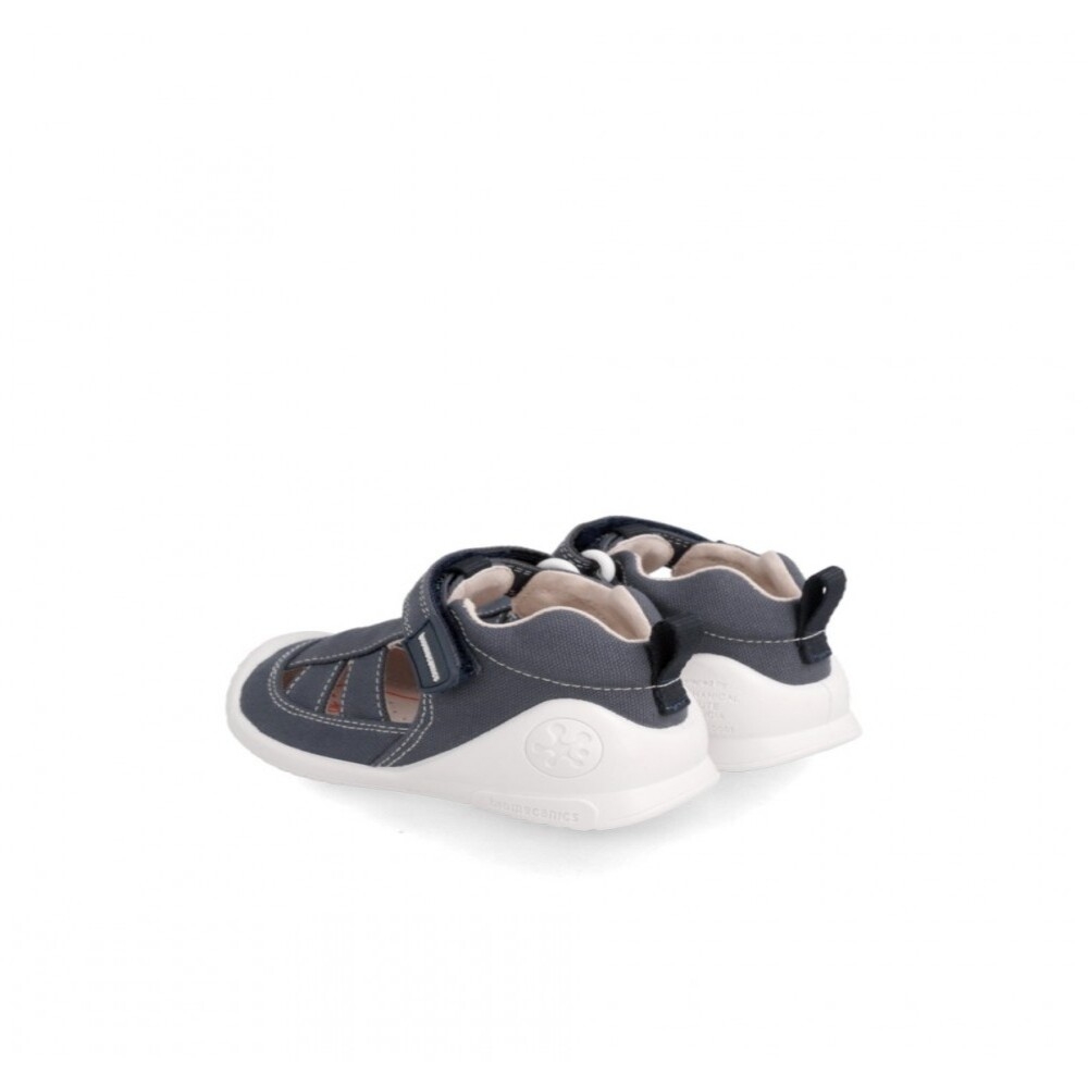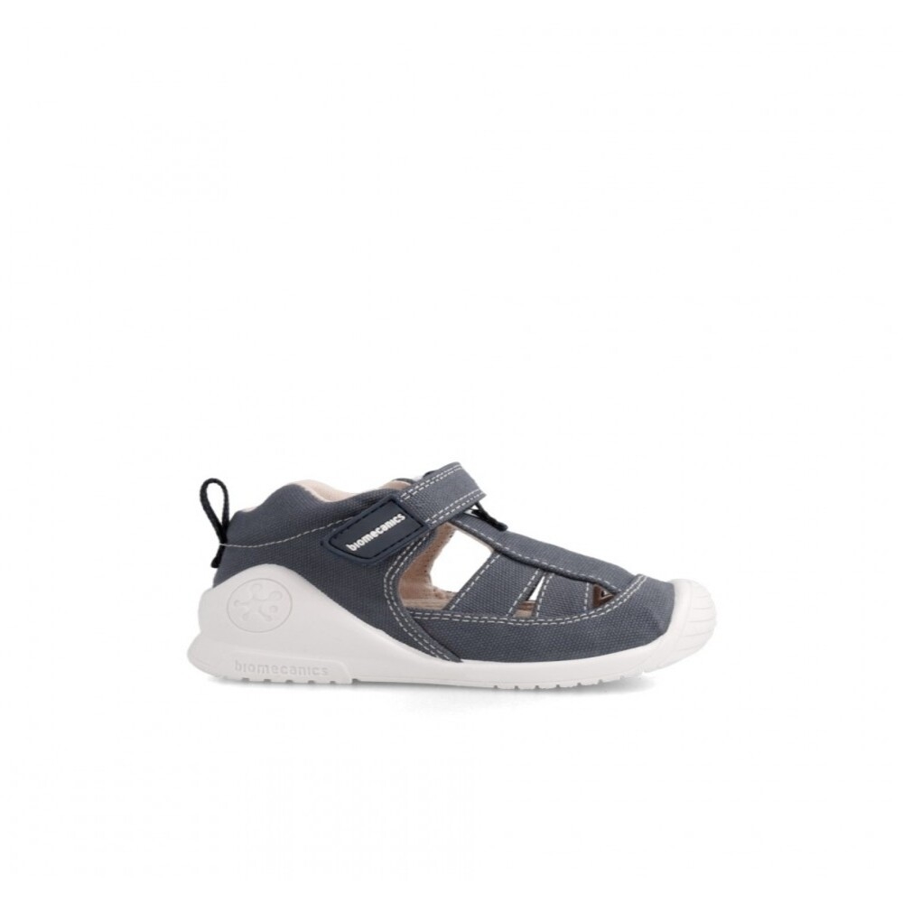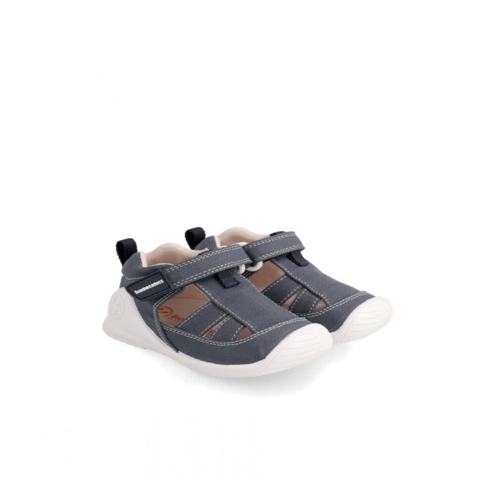 Sandalia tipo cangrejera Biomecanics Biogateo de lona. Usamos materiales de primera calidad para asegurar la adecuada TRANSPIRACIÓN. CIERRE ADHERENTE ajustable para adaptarse sin presiones a las necesidades del pie. Estabilizador blandito: libera el tobillo y protege el pie. Plantilla plana antibacterias. Suela biomecánica: goma antideslizante. Puntera: reforzada. Costuras interiores aplanadas. Confort térmico. En Biomecanics protegemos sus pies respetando siempre el crecimiento natural y los ritmos evolutivos que cada peque necesita. Certificado ecológico ORGANIC 100 content standard. Lavables.
