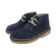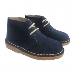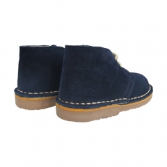 Botita en piel de serraje marrón con cordones.