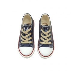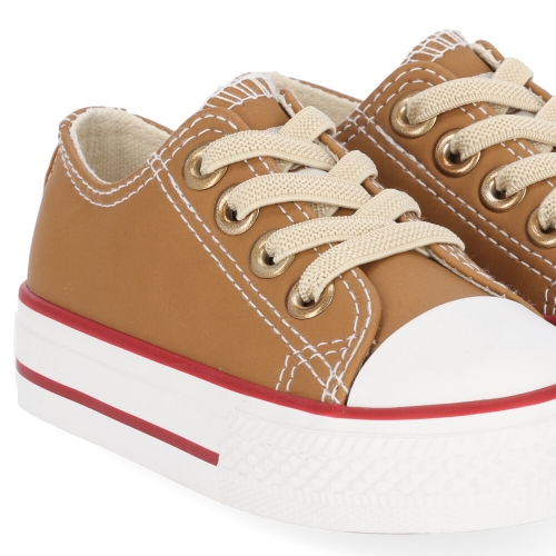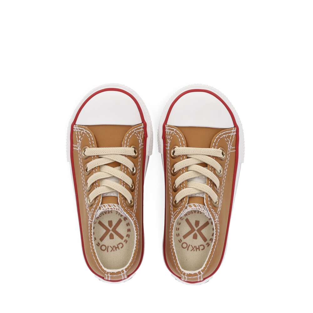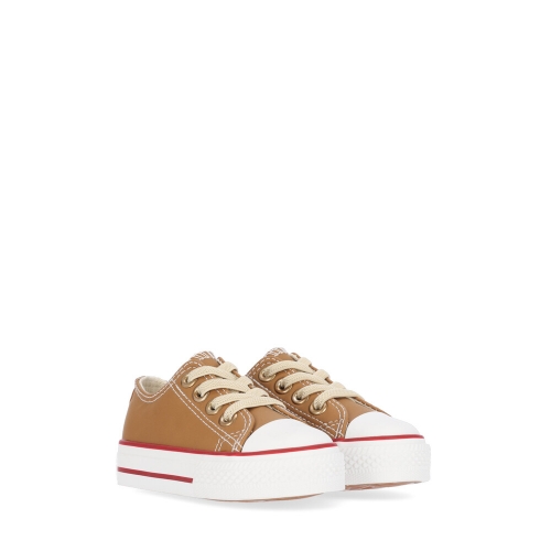 Deportivo color panama de niño. Zapatilla de piel sintética de tacto suave, cordones elásticos. Puntera y suela de goma.