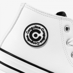 Sneakers altas confeccionadas en napa. Cordones de algodón ajustables. Cremallera en el lateral interno para facilitar su puesta. Puntera y suela de goma. Logo de Conguitos en la parte externa de la zapatilla. Comodidad, estilo y versatilidad en una sneakers.