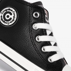 Sneakers altas confeccionadas en napa. Cordones de algodón ajustables. Cremallera en el lateral interno para facilitar su puesta. Puntera y suela de goma. Logo de Conguitos en la parte externa de la zapatilla. Comodidad, estilo y versatilidad en una sneakers.
