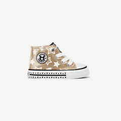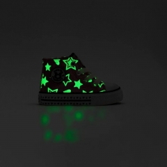 Zapatillas altas de bebé con estrellas y corazones que brillan en la oscuridad en color plata metalizado, con puntera y suela de goma. Tienen cremallera en un lado de la bota y el logotipo de Osito en el otro. Estos zapatos de uso diario no pueden faltar en el armario de ningún bebé. Cómodos, ponibles y ¡brillan en la oscuridad!