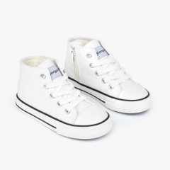 Las nuevas zapatillas altas de lona con cordones en color negro. Tiene detalle de cordón y cremallera en el lateral de la bota. Suela de goma que garantiza la flexibilidad y puntera reforzada para una mayor protección de los dedos. El calzado básico para el día a día que no puede faltar en el armario.