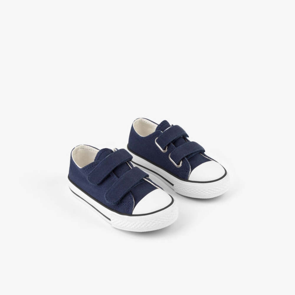 Zapatillas para bebé en color azul marino. Estas nuevas lonas tienen la suela de goma, el cierre adhesivo y la puntera reforzada, asegurando la comodidad en cada pisada de los más pequeños de la casa. Además, tiene algunos detalles en negro como el logo de Conguitos. Unas zapatillas básicas para esta primavera-verano perfectas para combinar con cualquier outfit.