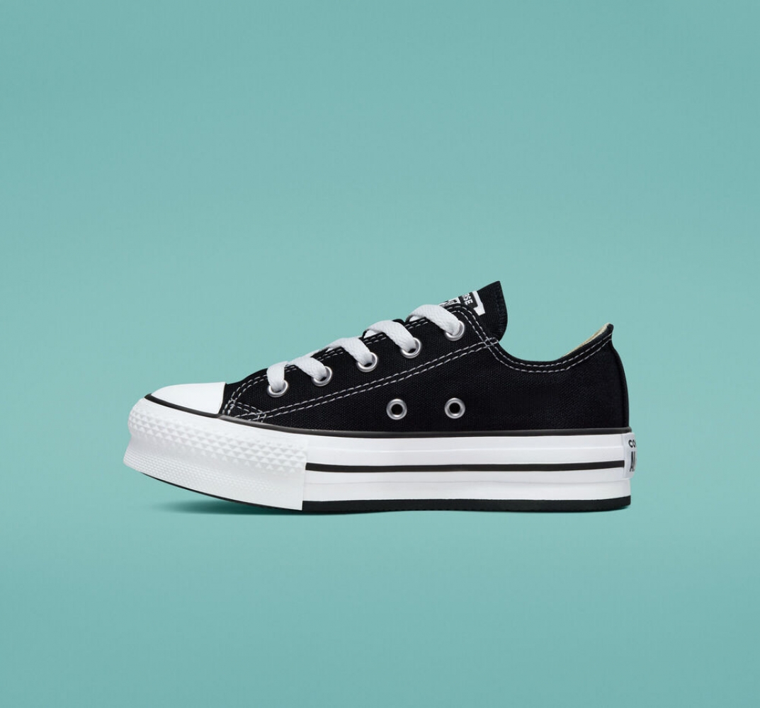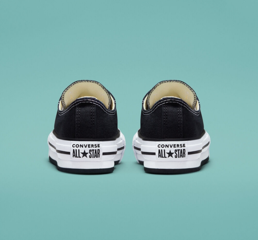 La leyenda de corte bajo se reinventa para los más pequeños con una plantilla de amortiguación SmartFOAM, además de costuras y forro suavizados. La parte superior de lona de corte clásico sobre la mediasuela con plataforma y espuma EVA aporta un estilo elevado. El modelo se completa con los elementos clásicos de las Chuck Taylor All Star, como el parche del tobillo con estrella, rayas en contraste en la mediasuela y la suela exterior con patrón de diamante.