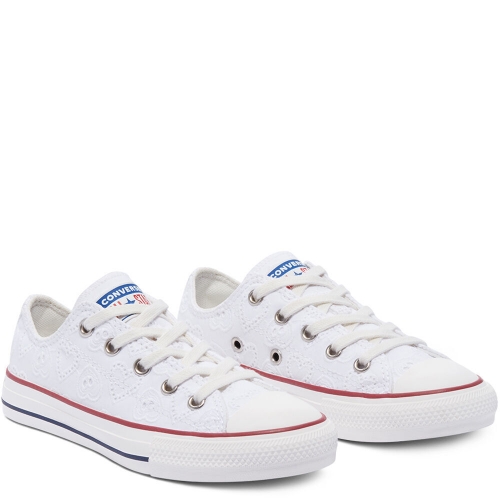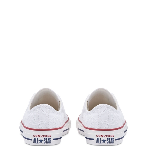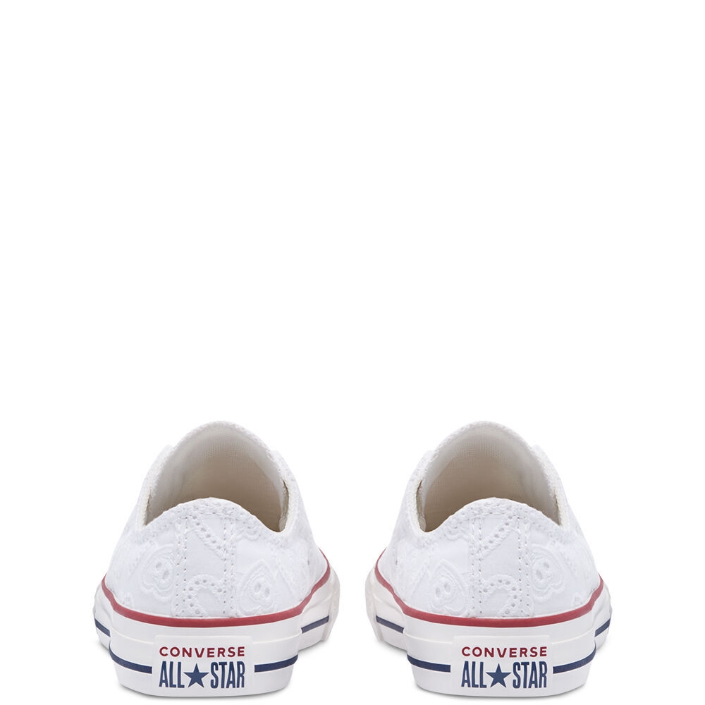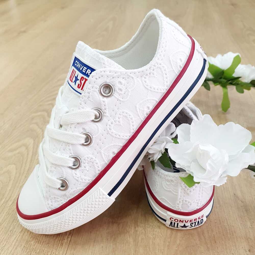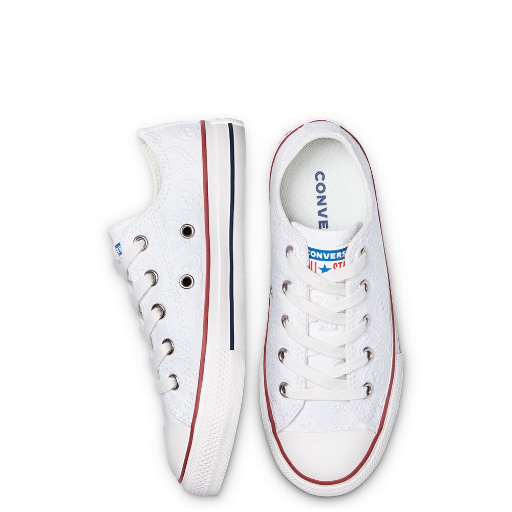 Los ojales de croché en forma de corazón aportan un toque boho a las sneakers favoritas de los más pequeños. La confección de algodón íntegramente en blanco queda bien con todo, y los corazones sutiles y tonales irradian el amor a su paso.