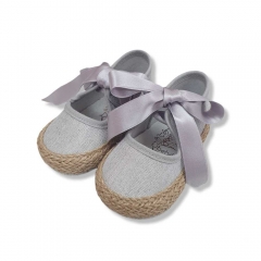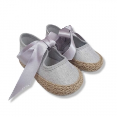 Angelito para bebé en tejido imitacion al lino colo rosa, interior de piel y detalle de tira de esparto.