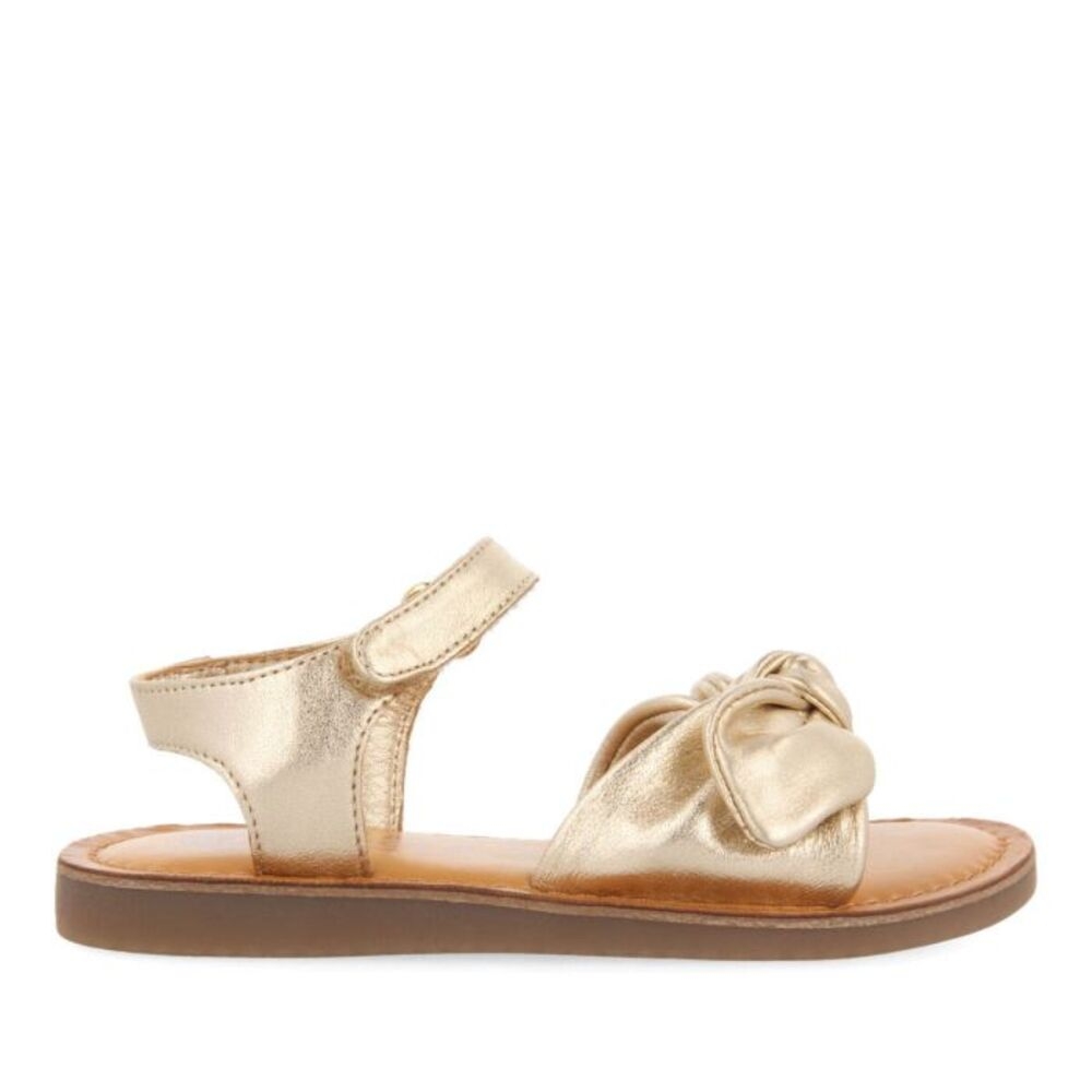 Todas las novedades en calzado infantil están en Gioseppo Kids. ¡Conócelas! Sandalias de piel metalizada en color oro con pala anudada y lazada. El talón es con cierre ajustable/regulable. La plantilla es de piel acolchada de látex. El forro en piel y piso TPR flexible. La plantilla es de piel curtida en tenerías que siguen un proceso de curtición más sostenible bajo los estándares Leather Working Group. Plantilla piel. Plantilla muy acolchada de látex. Forro piel . Piso TPR flexible. Plantilla piel curtida en tenerías LWG.
