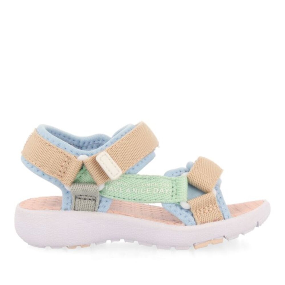 ¡Las sandalias más cool de esta temporada! Sandalias de aspecto deportivo color turquesa con suela de EVA muy confortable y ligera. El corte es de neopreno gris con cintas de nailon en variedad de colores. El cierre es de clip ajustable. La plantilla es acolchada y tanto el forro cómo la plantilla son de poliéster. Plantilla acolchada, Forro de poliéster, Plantilla de poliéster, Suela de EVA, Suela ligera