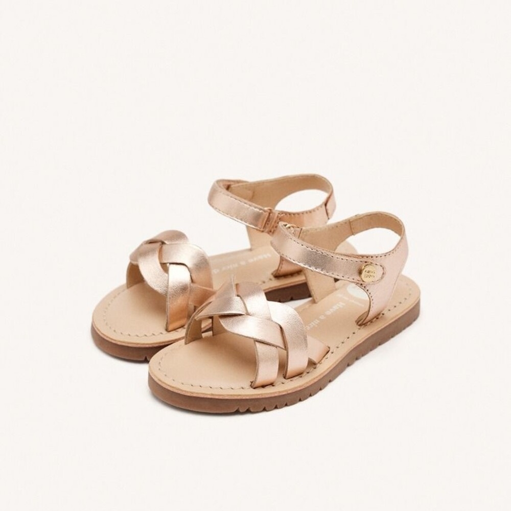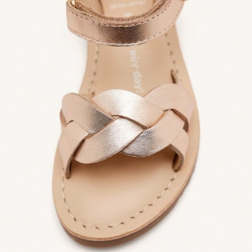 Sandalias de piel con trenzado. Cuentan con planta acolchada de piel y cierre ajustable en el tobillo.