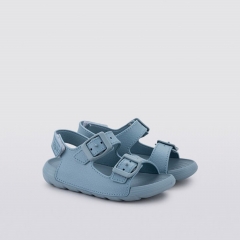 Sandalia monocolor de estilo bio, con cierre de hebilla y sujeción trasera adherente.