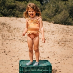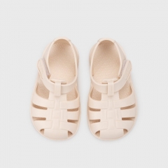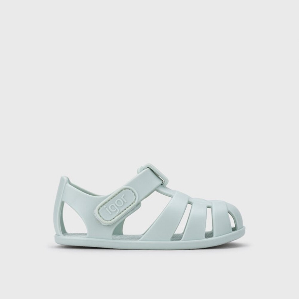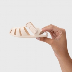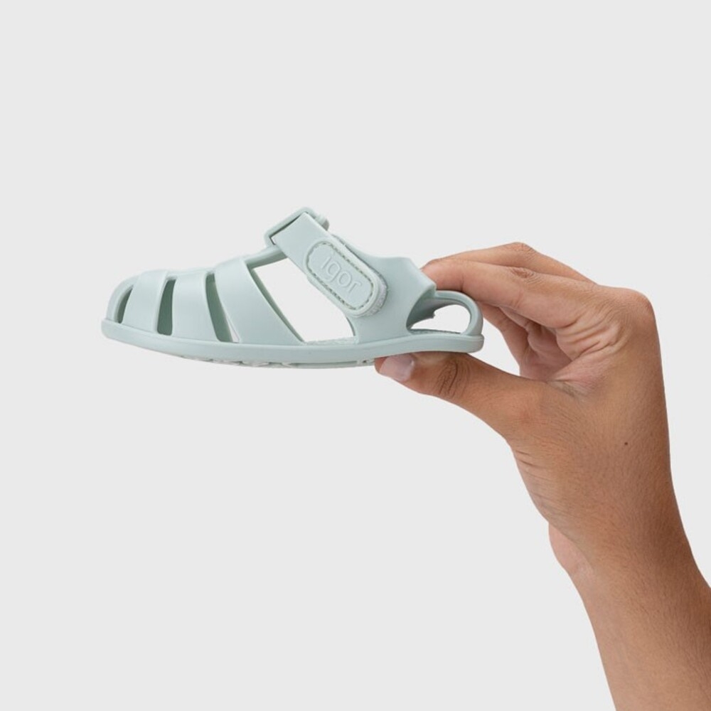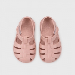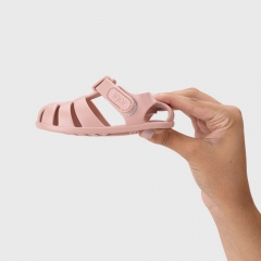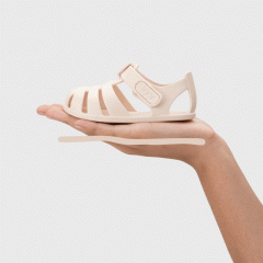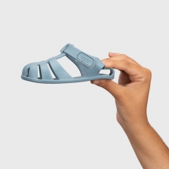 Cangrejera diseñada en concepto barefoot medium, cero drop, flexible y blandita, fabricada con al menos un 50% de pvc reciclado libre de ftalatos y cierre adherente.