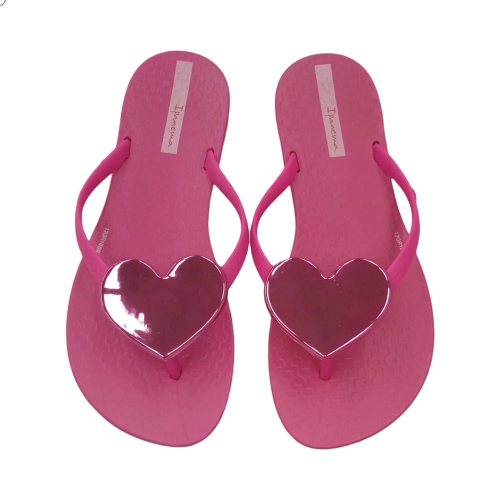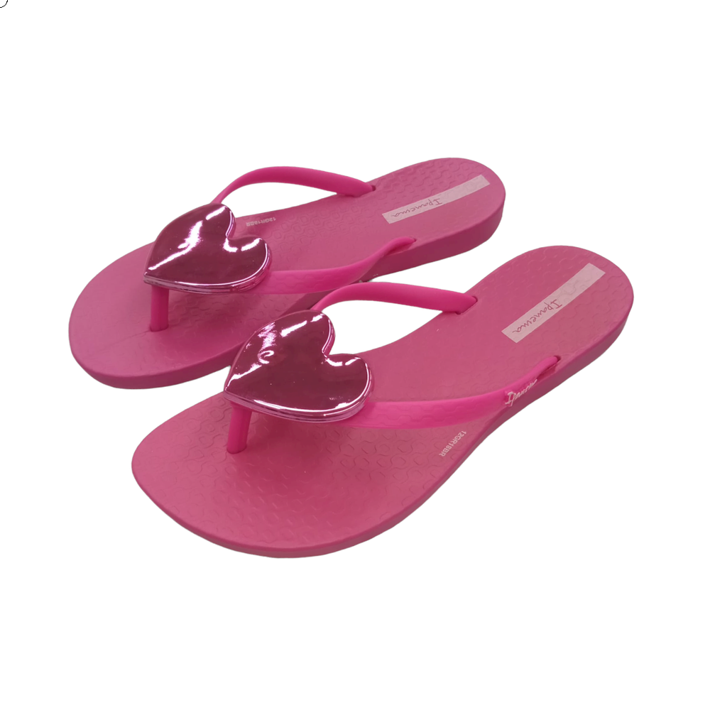 Chancla para piscina o playa con detalle de corazón en rosa fucsia.