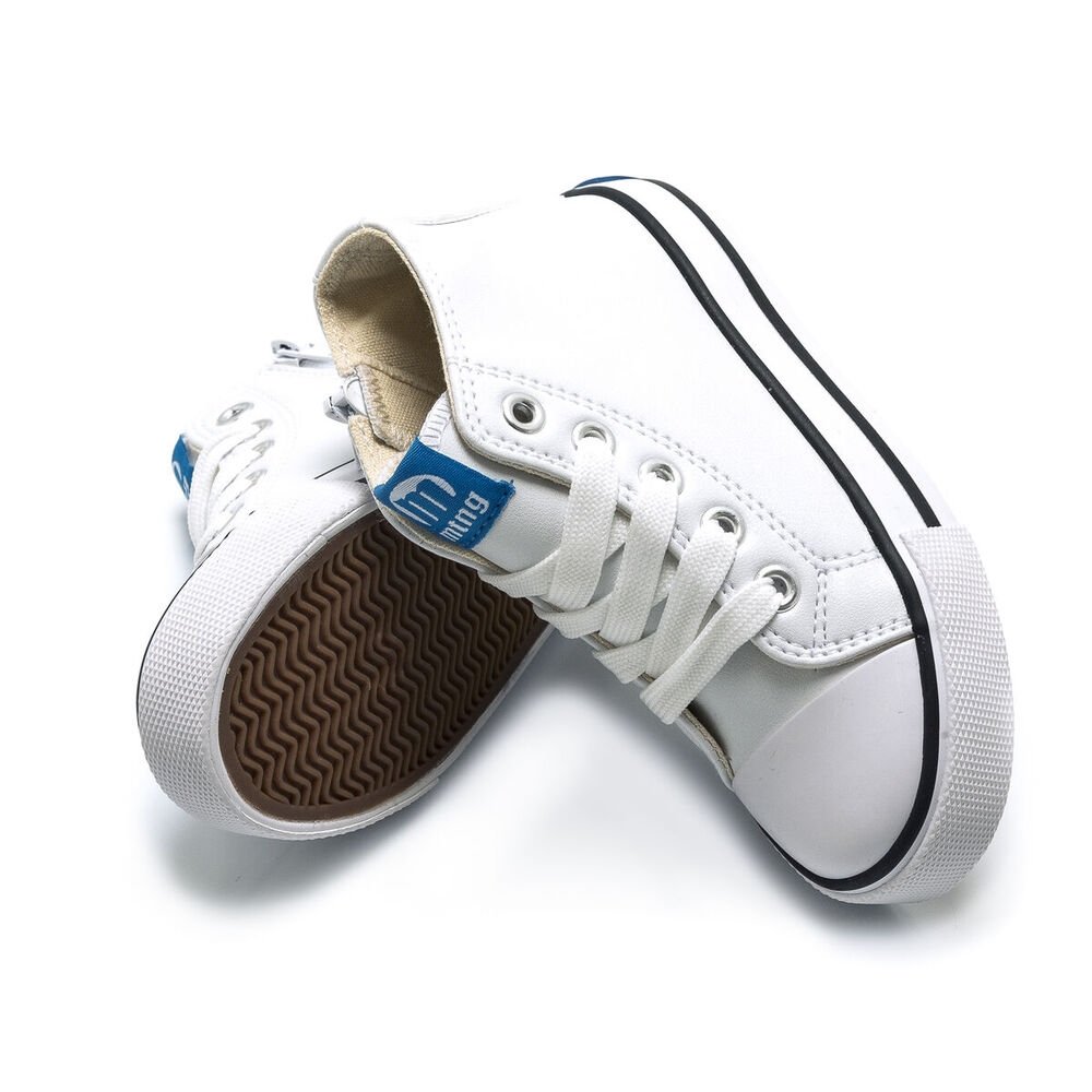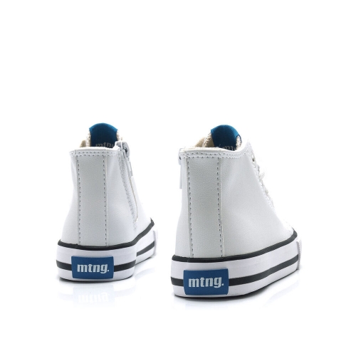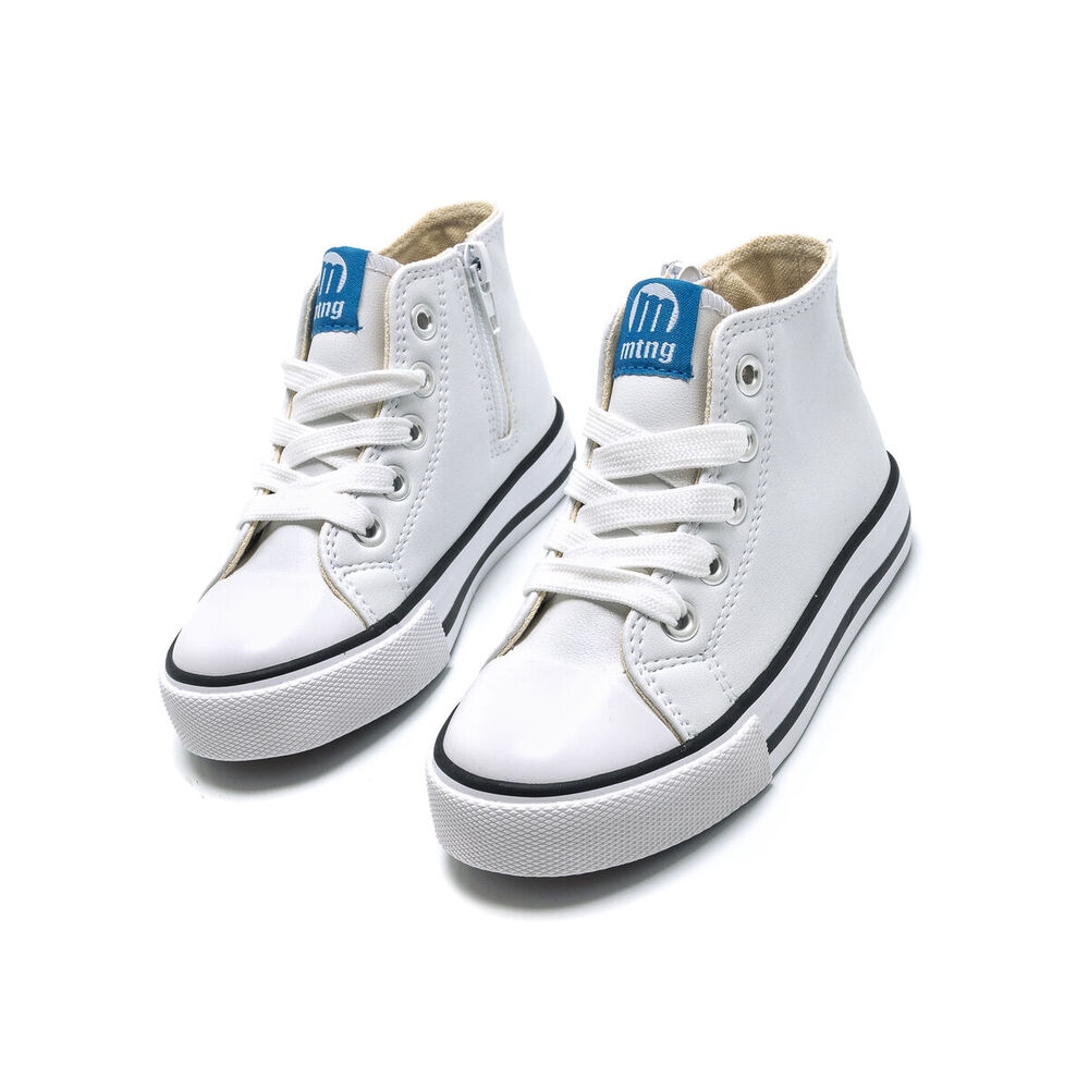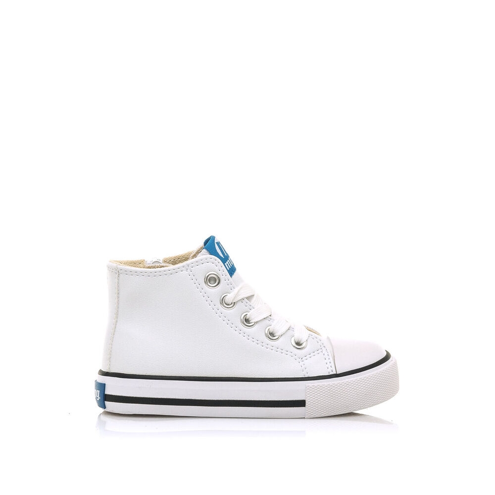 Deportiva Remix K abotinada unisex de color blanco con diseño en piel sintética con suela de goma y puntera de goma con detalle del perfilado en negro, tiene cierre con cordones blancos y detalle en la lengüeta del logo de la marca en azul. Estas Mustang son un básico de temporada para ellos, que no se queden sin ellas este invierno.