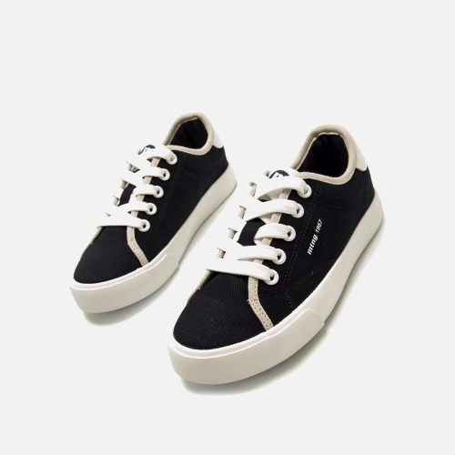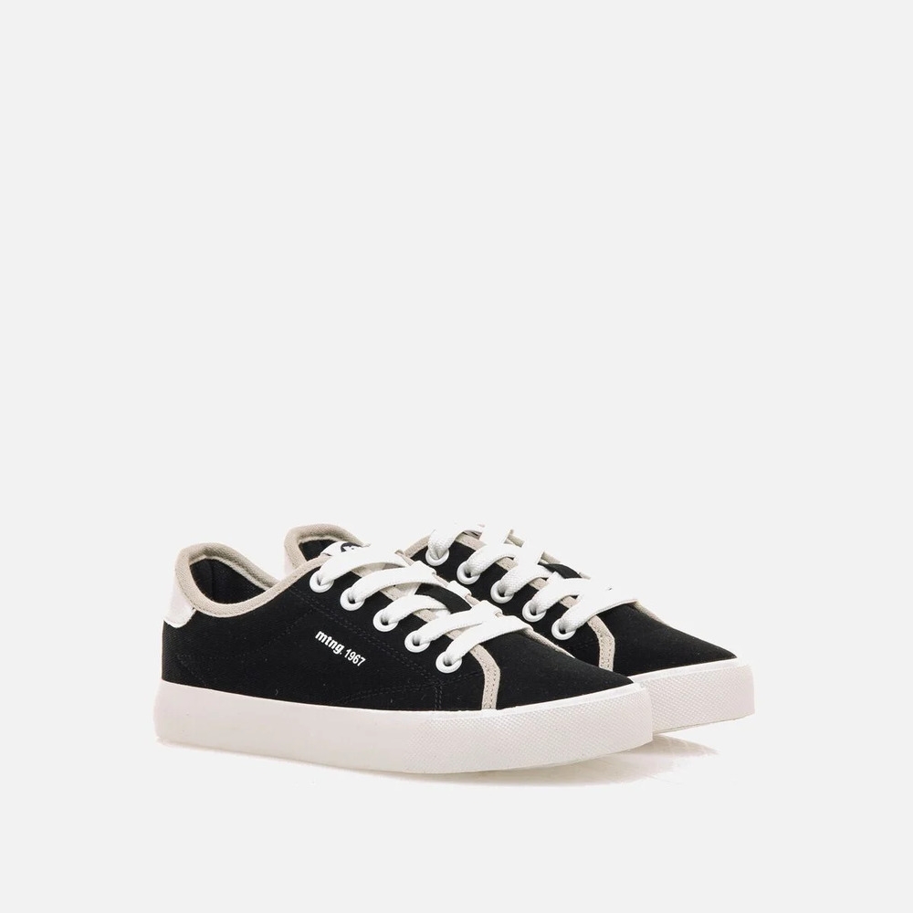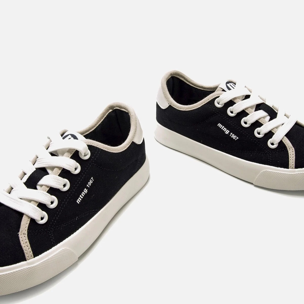 Zapatillas casual para niño de la marca Mustang, modelo Emi en color marino. Estas zapatillas destacan por su diseño clásico con cordones y detalles en blanco que aportan un toque moderno. Su suela de goma asegura un buen agarre y comodidad para el uso diario. Ideales para complementar looks casuales y relajados. Fabricado con un 60% de algodón reciclado post consumo y un 40% de algodón convencional. Con certificado VEGANO sellado por INESCOP, el cual garantiza que la naturaleza química principal del material no se corresponde con fibras de origen animal.