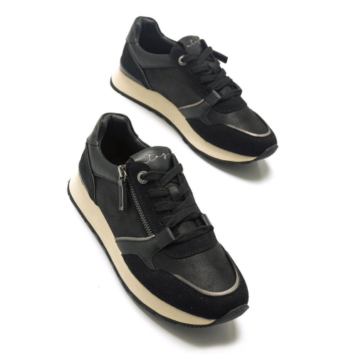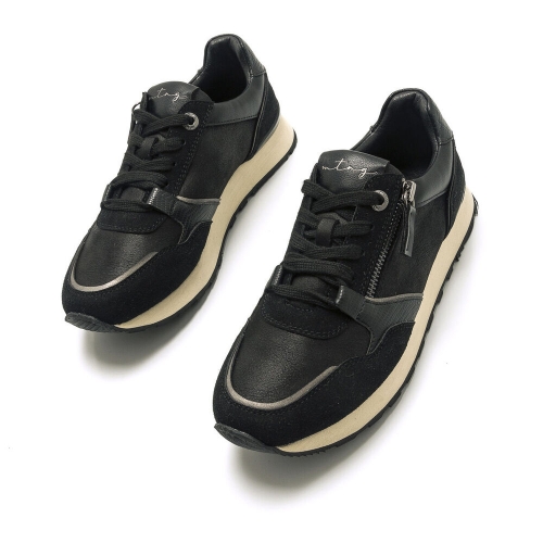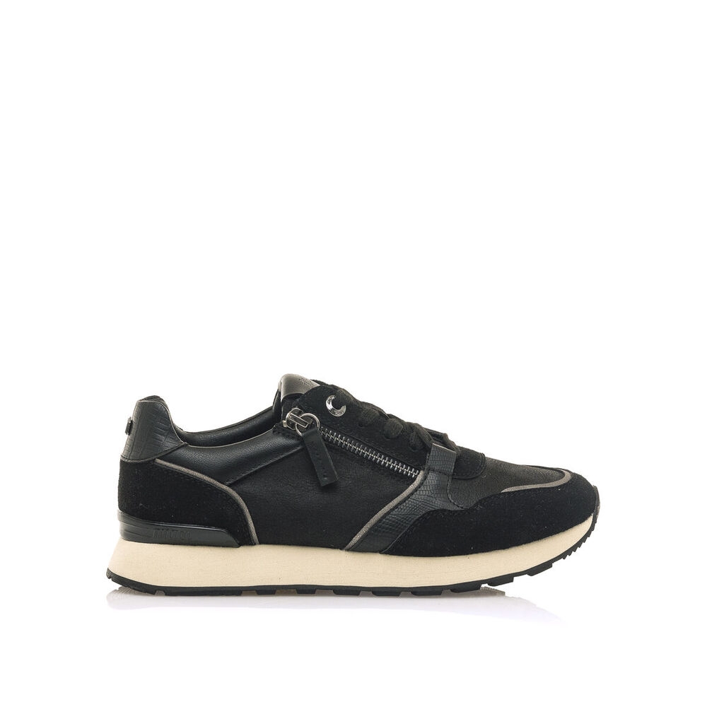Zapatilla deportiva Joggo Classic Mustang para mujer. Con diseño de color negro y una estetica más casual que la clásica joggo. Como detalle incluye una cremallera que cruza el empeine. Cierre de cordones planos al tono. Diferentes paneles con texturas. Será la opción más elegante y cómoda para hacer frente a los retos de tu día a día.