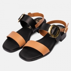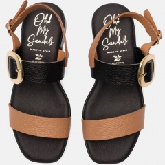 Sandalia de mujer con tacón fabricada en piel. Diseño en tiras metalizadas color cava, plata y platino, con un suave grabado sobre la piel y dos hebillas doradas para un ajuste perfecto. El modelo Malena es ideal para ofrecer estabilidad y amortiguar tu pisada gracias a su planta acolchada de microfibra transpirable y su suela de goma flexible y antideslizante.