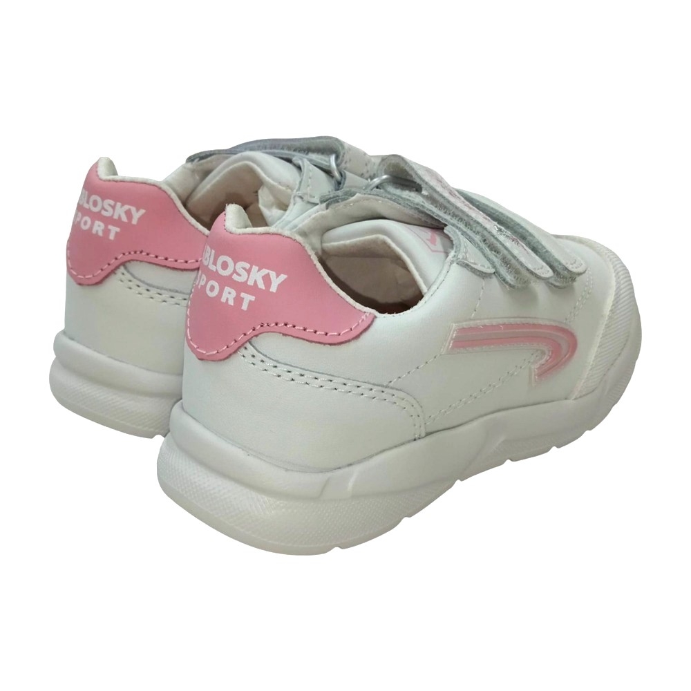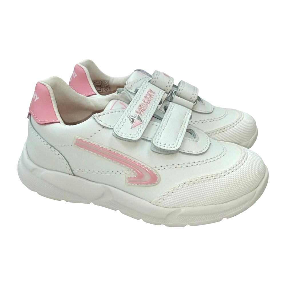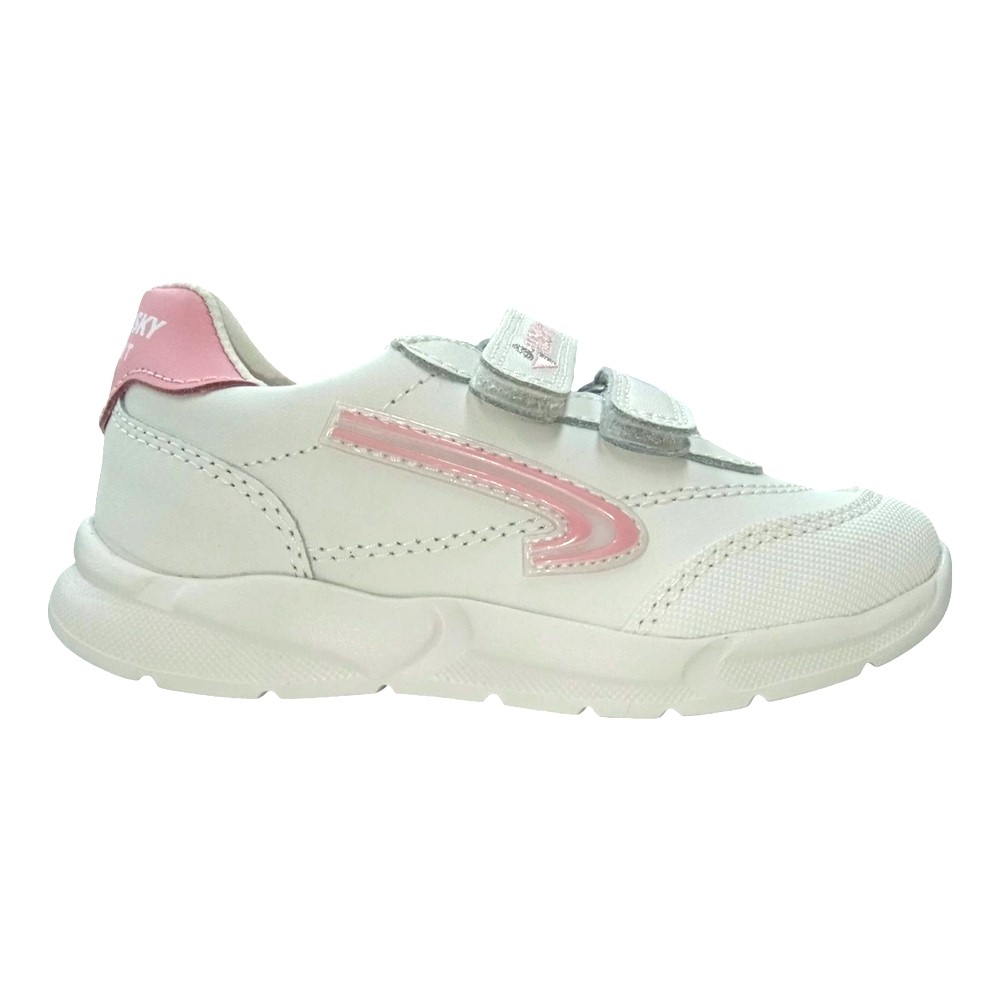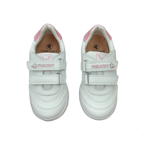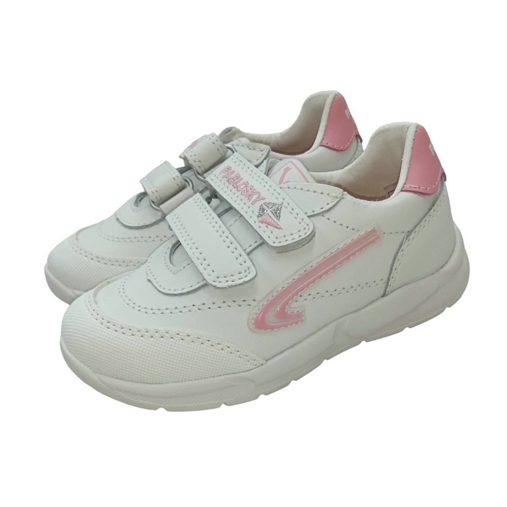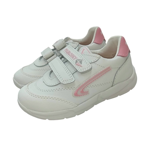 Deportivo blanco-rosa en piel. Cierre en dos velcros para la mayor sujeción y adaptación a cualquier tipo de pie. Plantilla de piel totalmente transpirable. Piso ultraligero de gran resistencia y comodidad, para sentir los pies libres todo el día.