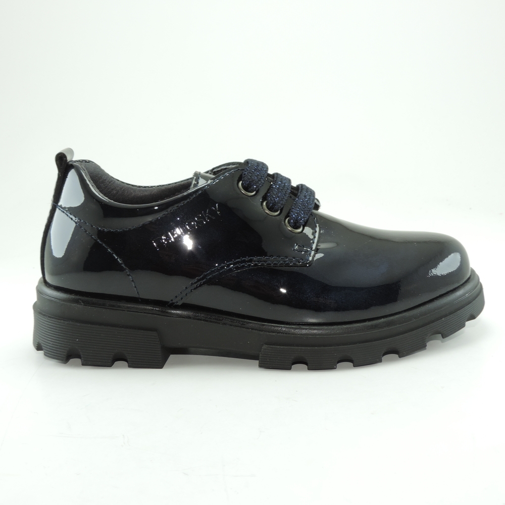 Blucher color marino en piel y charol. Piel natural de primera calidad que garantiza la correcta transpiración del pie. Cierre en cordones con brillito. Diseño de última tendencia para un look moderno y casual. Comodidad, durabilidad y versatilidad de un calzado 100% español. Plantilla amortiguadora superabsorbente y antibacteriana. Incorpora protectores interiores de talón y puntera con efecto ping-pong, que recuperan la posición inicial del calzado. Piso de goma negra antideslizante y de alta resistencia, incorpora las exclusivas tecnologías SUPERFLEX, que favorece que la flexión normal del pie, y AIRBAG amortiguador de pisada.