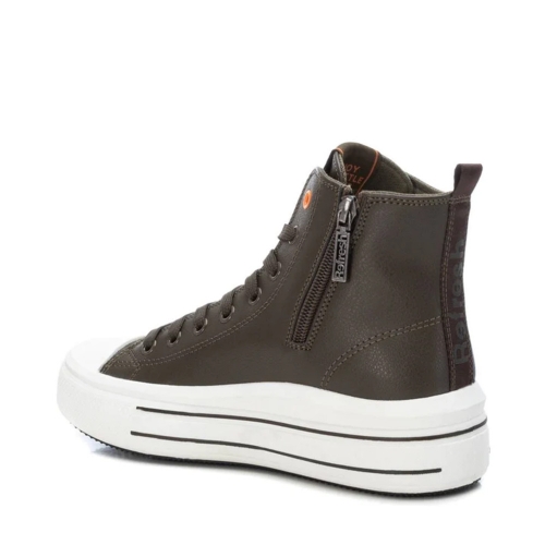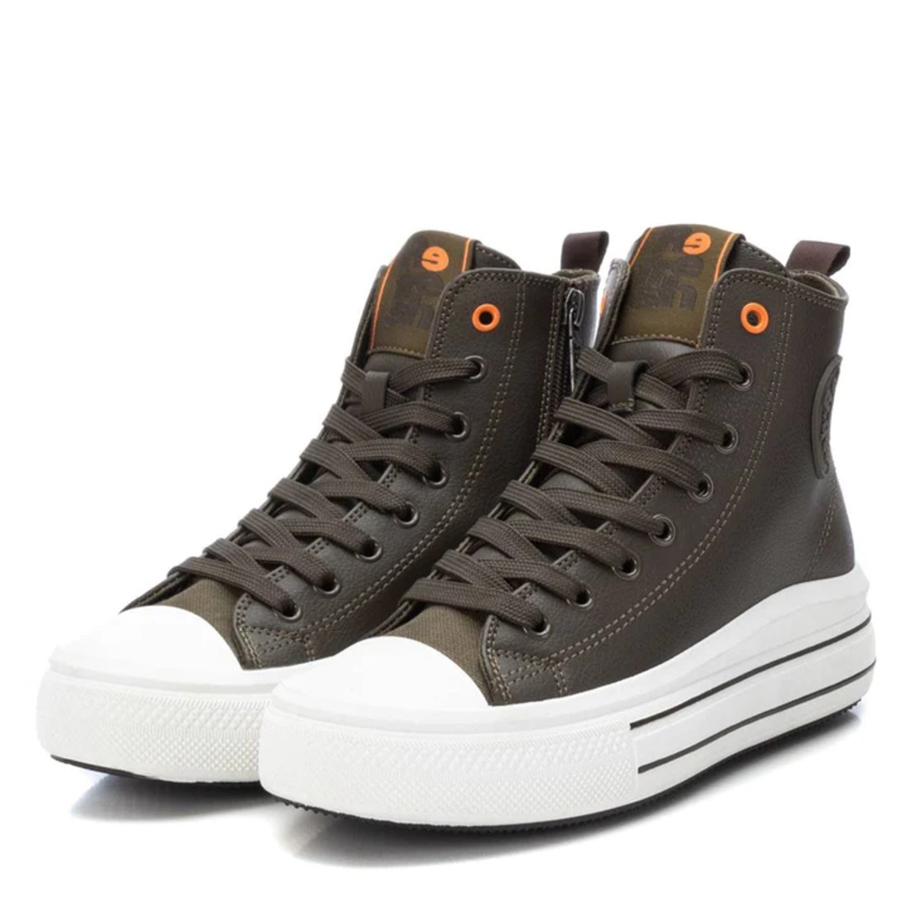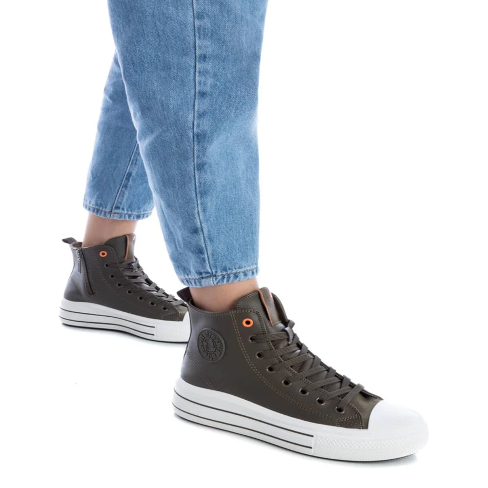Botín deportivo de mujer, de la marca Refresh. Fabricado en material que imita la piel. Cierre mediante cremallera lateral y cordones ajustables. Tirador trasero para facilitar la puesta. Forro en contraste. Doble piso con suela de goma antideslizante. Este modelo ha obtenido el certificado vegano por la organización mundial PETA (Organización de los derechos de los animales).