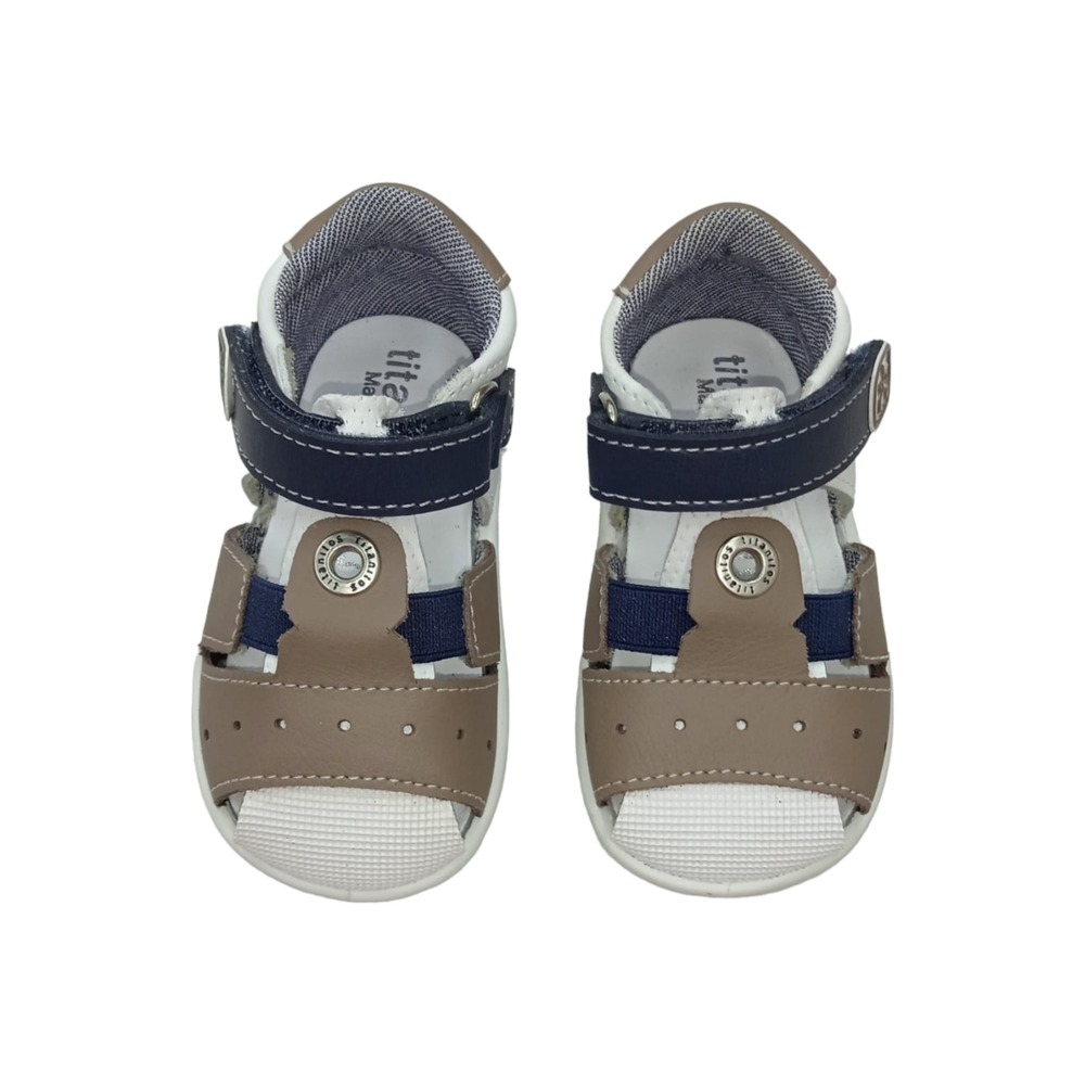 Sandalia unisex en piel lavable con cierre ajustable de velcro y talón cubierto para un mejor agarre, empeine en multitiras y puntera cerrada. Cuenta con una plantilla ergonómica, antibacteriana y perfumada y dos de nuestras tecnologías exclusivas Titanitos más punteras, Movelastic y Bubble Absorber, que amortizan el impacto y facilitan el ángulo de flexión del pie mejorando su comodidad. Ideales tanto para niño como para niña y muy fáciles de combinar. Fácil limpieza y mantenimiento. 100% fabricado en España.