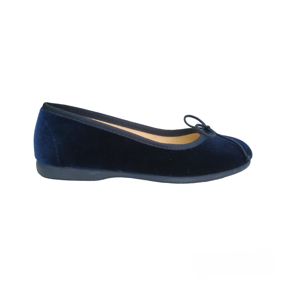 Bailarina en color marino terciopelo de la marca Tokolate. Cierre con lazo ajustable. Suela flexible y en tono con el zapato.