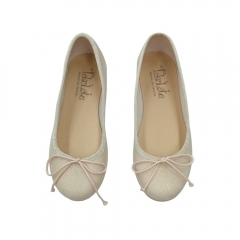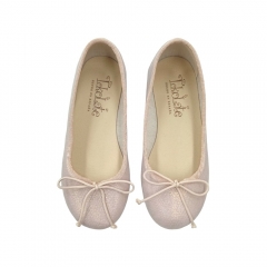Bailarina en tono plata con brillito y cordón ajustable para mayor sujeción.