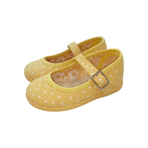 Mercedita en color amarillo con lunares blancos y cierre de hebilla.