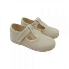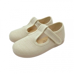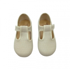 Pepito de lino en color blanco. Cierre en velcro con suela de goma color verde salvia al tono.