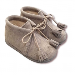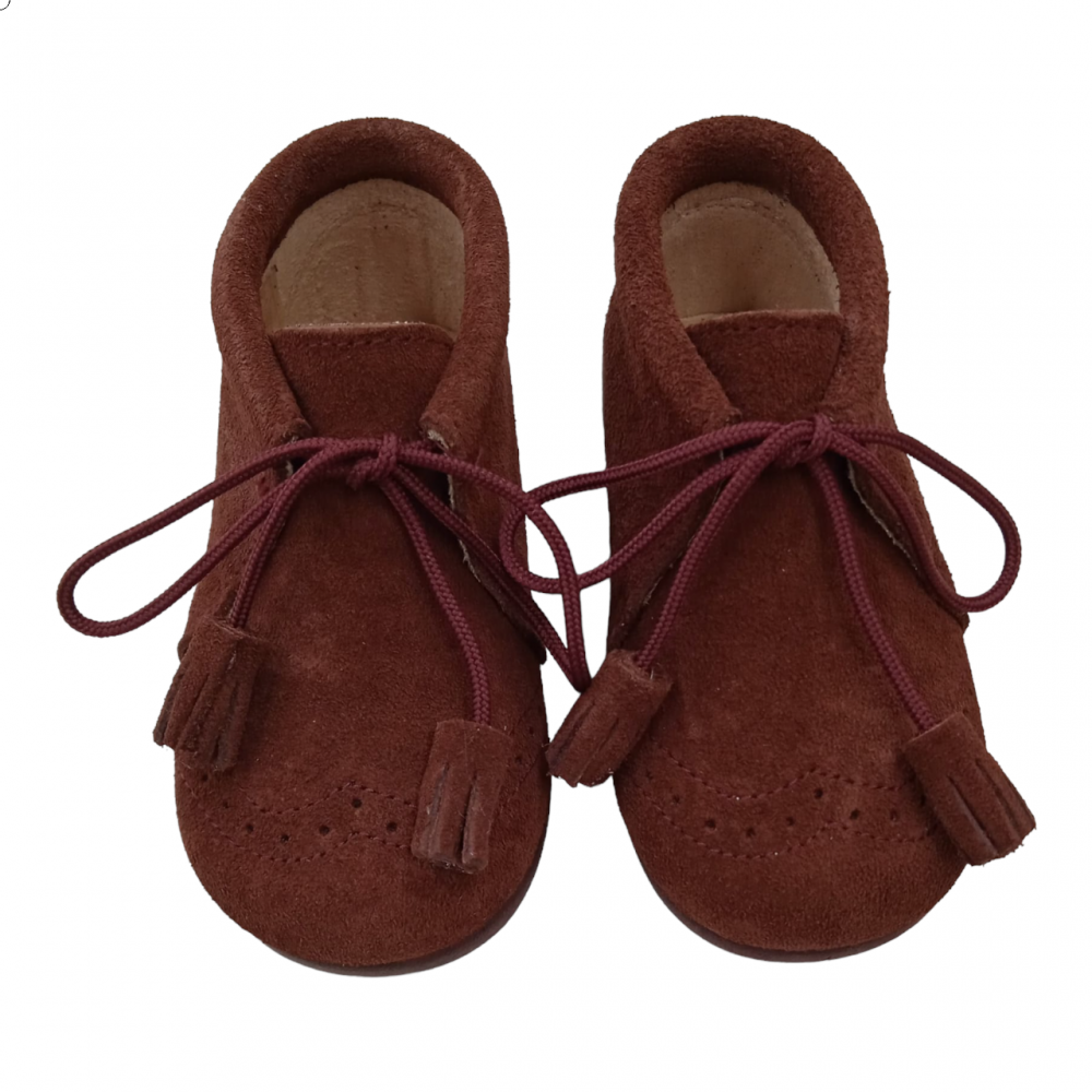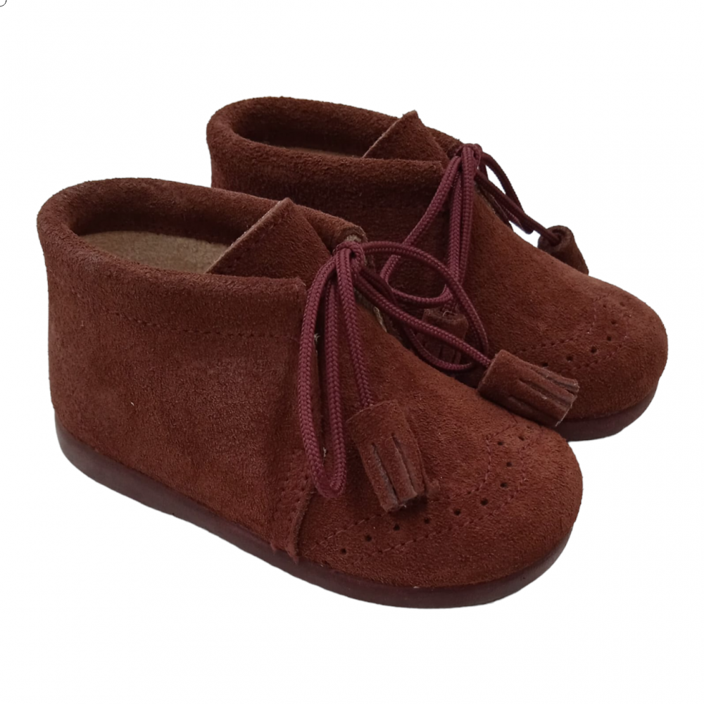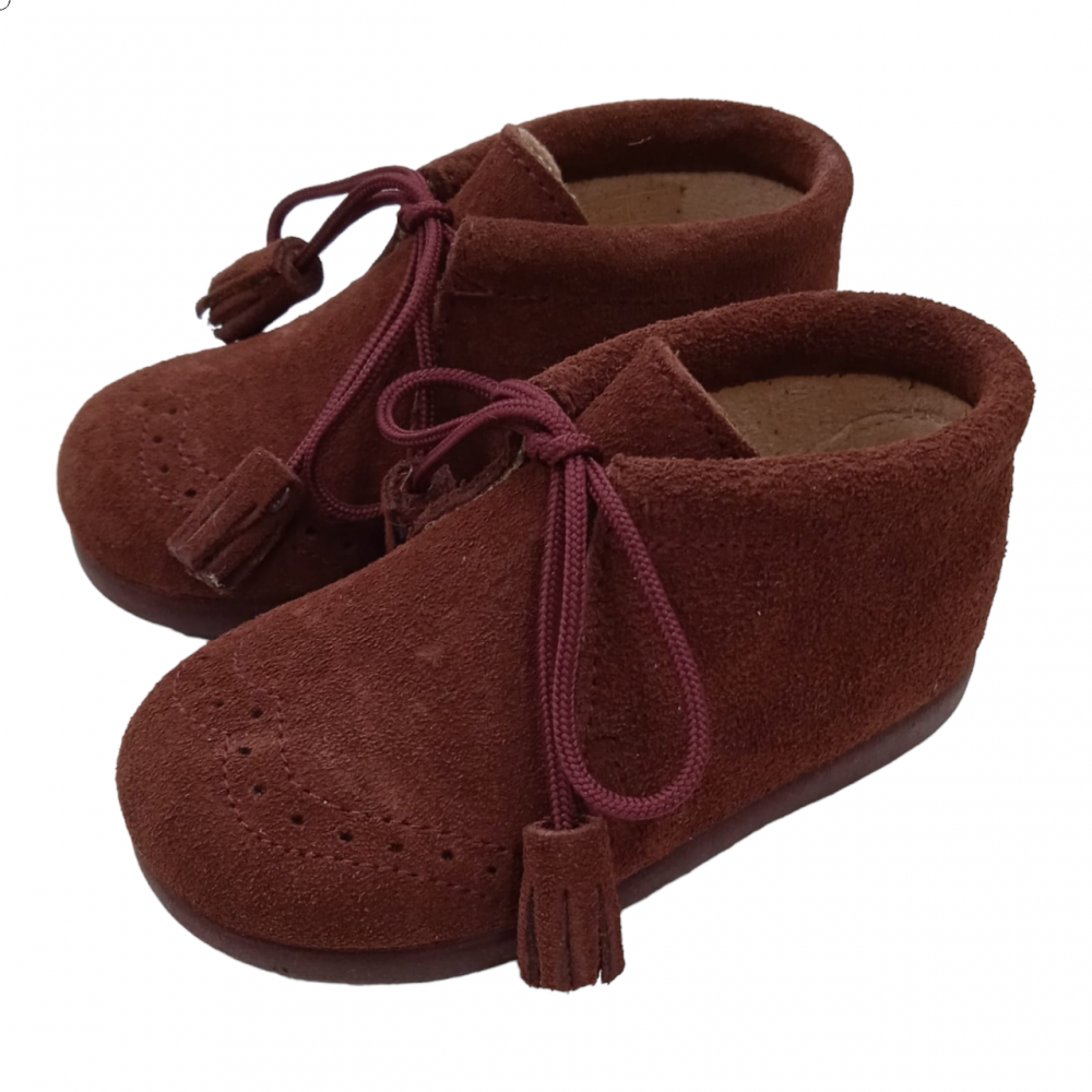 Botín serratex decorado semiperforado. Cierre con cordón y en el extremo borlas, piso de goma para más comodidad.