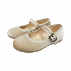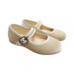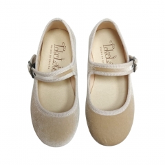 Mercedita color negro terciopelo de la marca Tokolate. Cierre en hebilla de color dorado. Suela flexible y en tono con el zapato.