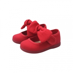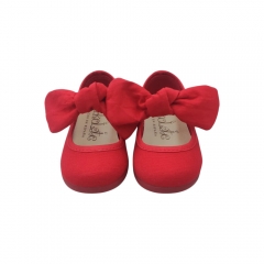Merceditas en lona color rojo con lazo decorativo y cierre de velcro.
