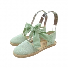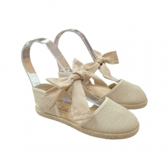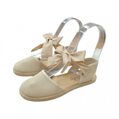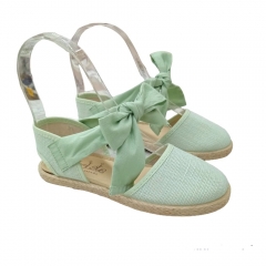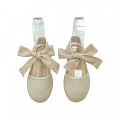 Zapato  de esparto estilo valenciana de la marca Tokolate, fabricado en textil imitando al lino en color blanco. Broche con lazada.