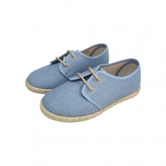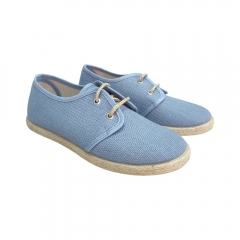 Buche en tejido lino blanco con cordones de rafia. Suela de caucho natural antideslizante para mayor comodidad al caminar con cerco de yute. Fabricado 100% en España y con productos naturales de alta calidad para garantizar transpiración y flexibilidad.