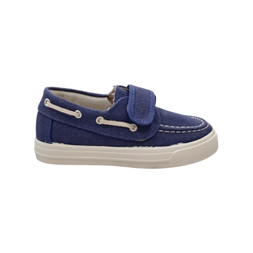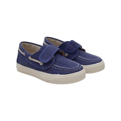 Náutico de lona en color tejano azul con cierre de velcro.