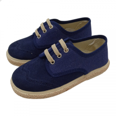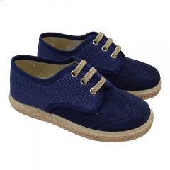 Bluche de lino combinado con serratex para niños con cierre de cordones.  Se ajustan al pie perfectamente. La plantilla es de textil, por lo que son muy cómodas. Están hechos en lino siendo ideales para looks arreglados, como eventos, bodas o comuniones. La suela es antideslizante, que no resbala.