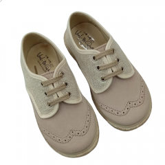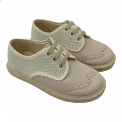 Blucher de lino combinado con serratex para niños con cierre de cordones.  Se ajustan al pie perfectamente. La plantilla es de textil, por lo que son muy cómodas. Están hechos en lino siendo ideales para looks arreglados, como eventos, bodas o comuniones. La suela es antideslizante, que no resbala.
