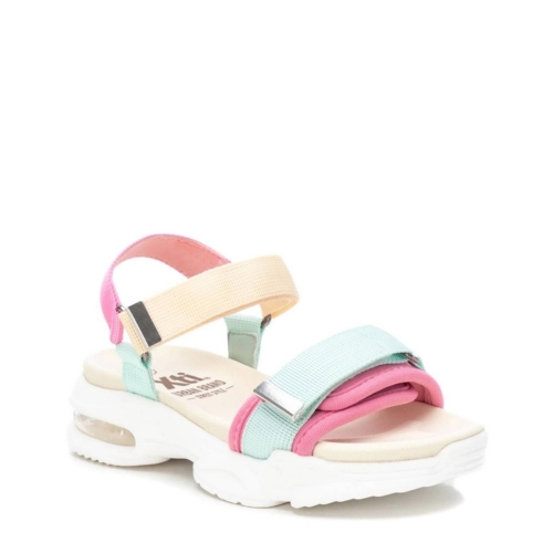 Sandalia de niña, de la marca Xti Kids. Fabricada en tiras textiles. Cierre mediante tiras adherentes. Cómoda planta al tono. Cámara de aire para un mayor confort y suela de goma antideslizante. Esta sandalia urbana es una apuesta segura esta temporada. Este modelo ha obtenido el certificado vegano por la organización mundial PETA (Organización de los derechos de los animales).
