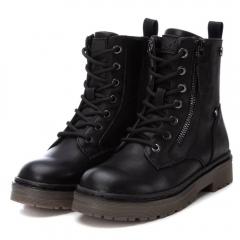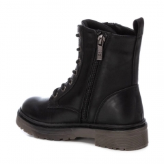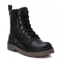 Botín de niña, de la marca Xti Kids. Fabricado en material que imita la piel. Con cierre cremallera en el lateral. Con doble suela de goma antideslizante, además de llevar tirador trasero para facilitar el calce de los más pequeños de la casa. Este modelo ha obtenido el certificado vegano por la organización mundial PETA (Organización de los derechos de los animales).