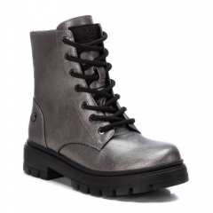 Botín de niña, de la marca Xti Kids. Fabricado en material metalizado que imita a la piel. Cordones negros regulables para un mejor ajuste. Cierre mediante cremallera interior. Gruesa suela de goma antideslizante. Este modelo ha obtenido el certificado vegano por la organización mundial PETA (Organización de los derechos de los animales).
